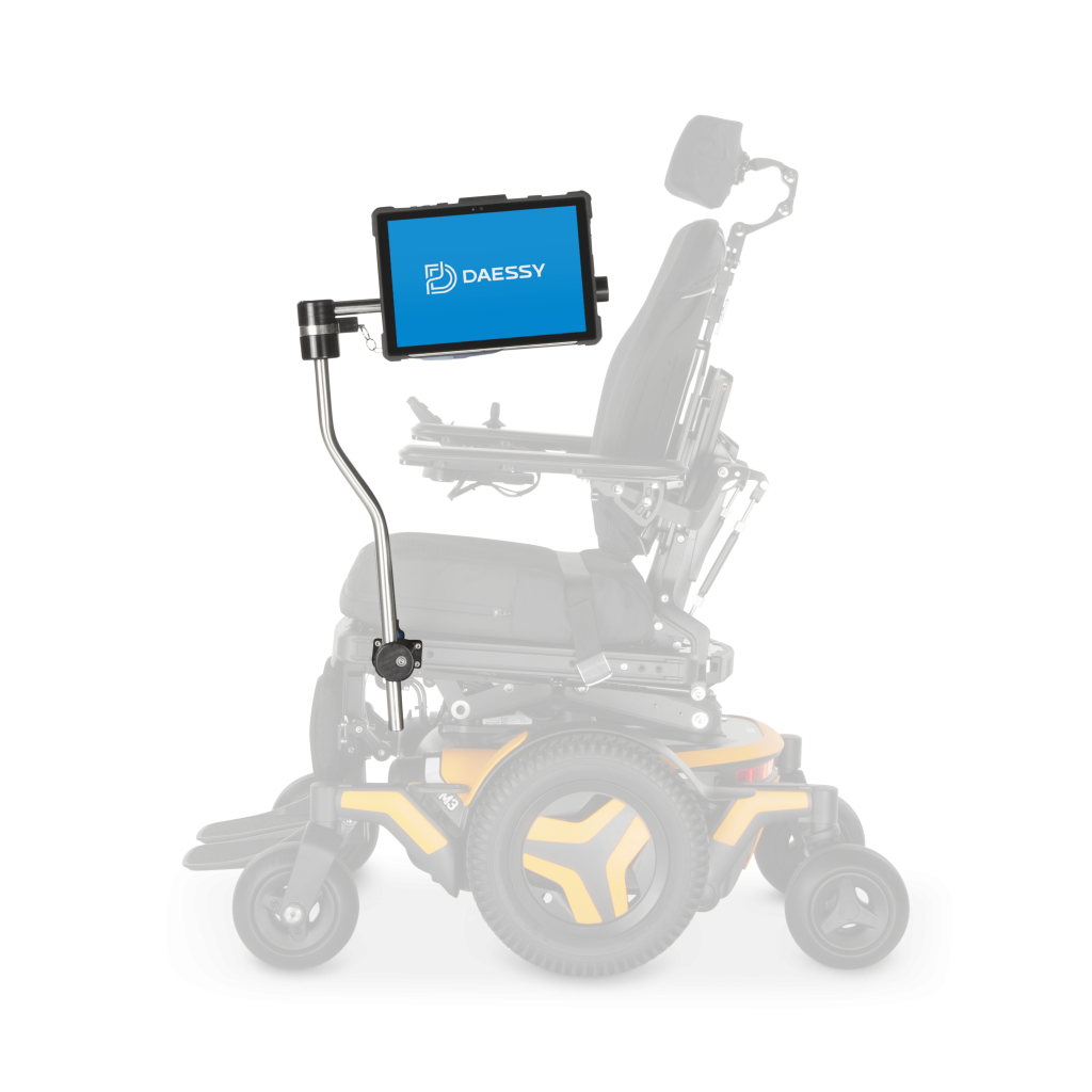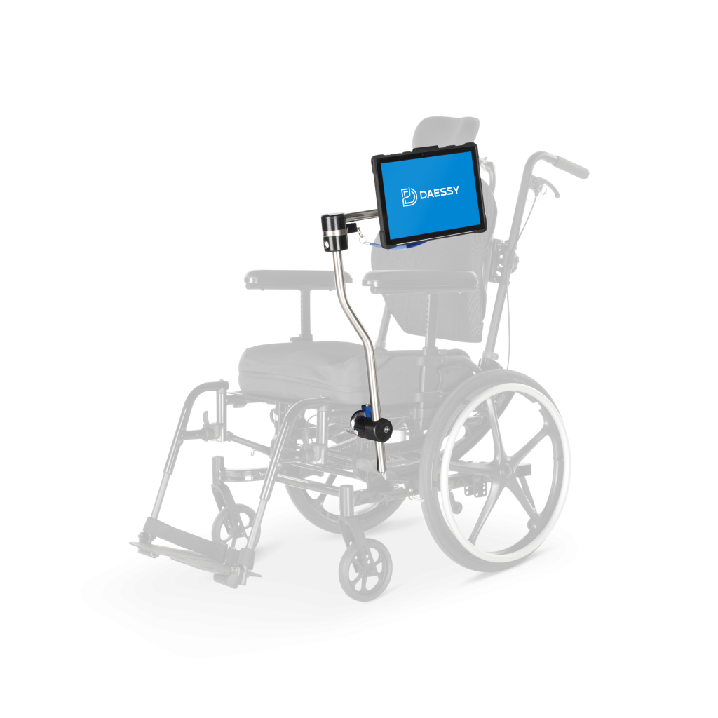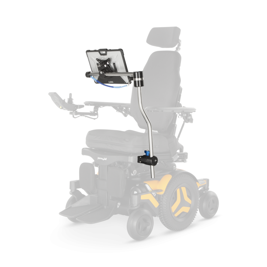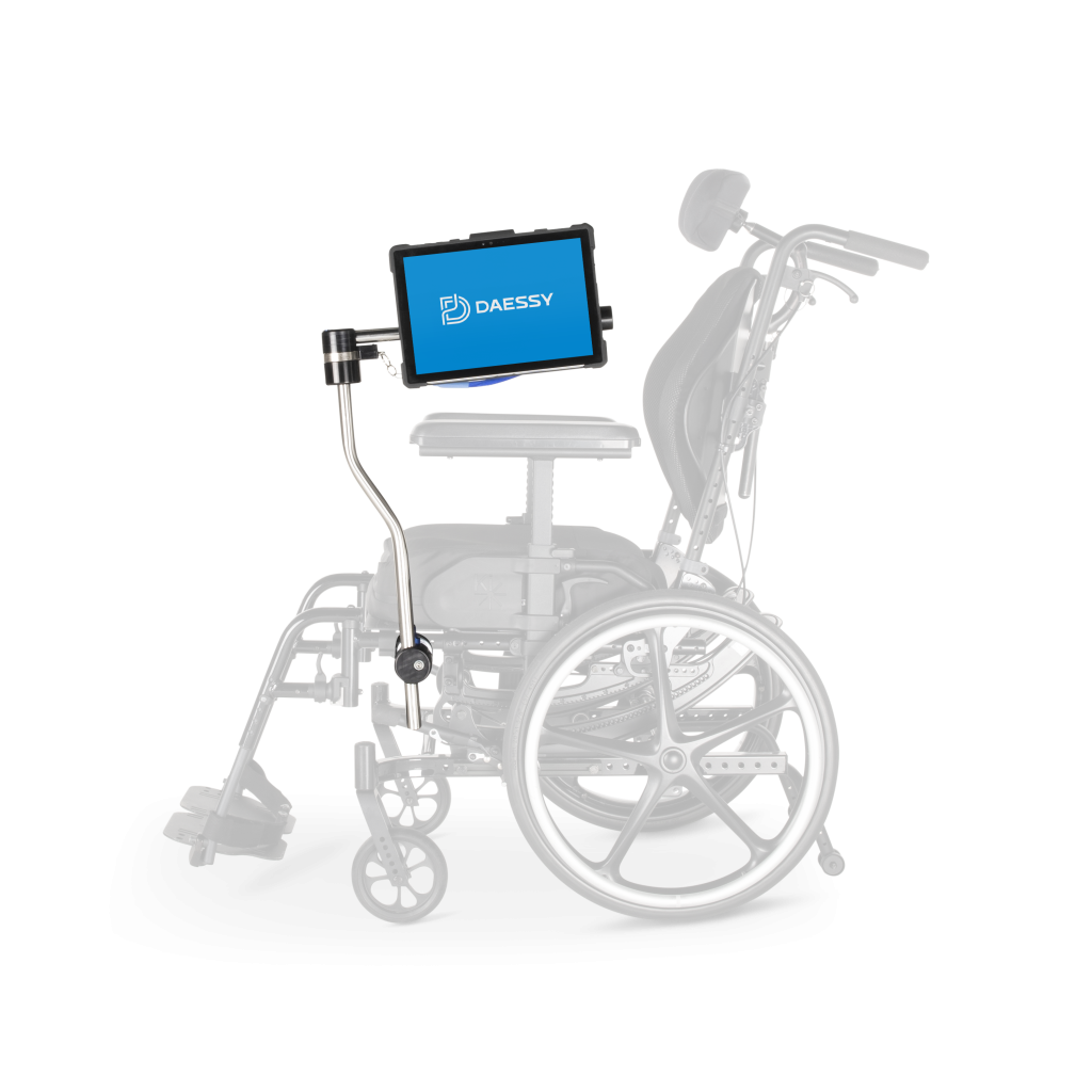 The Swing Aside Mount can support equipment that is heavy enough to unbalance an unoccupied and lightweight wheelchair when swung out to the side. It is recommended to remove the device and/or mount before the wheelchair is vacated.